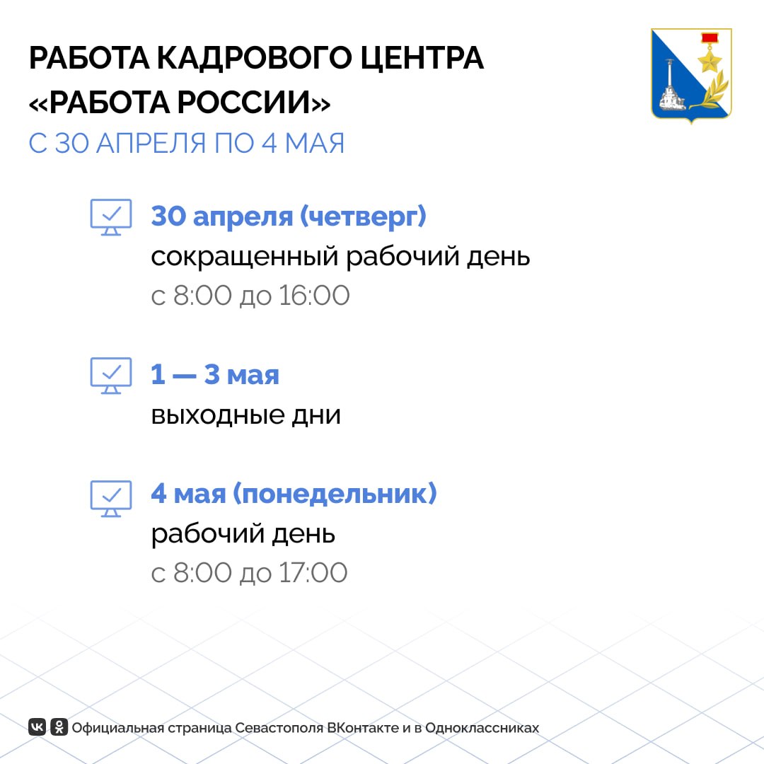 Как будет работать кадровый центр «Работа России» на майских праздниках?