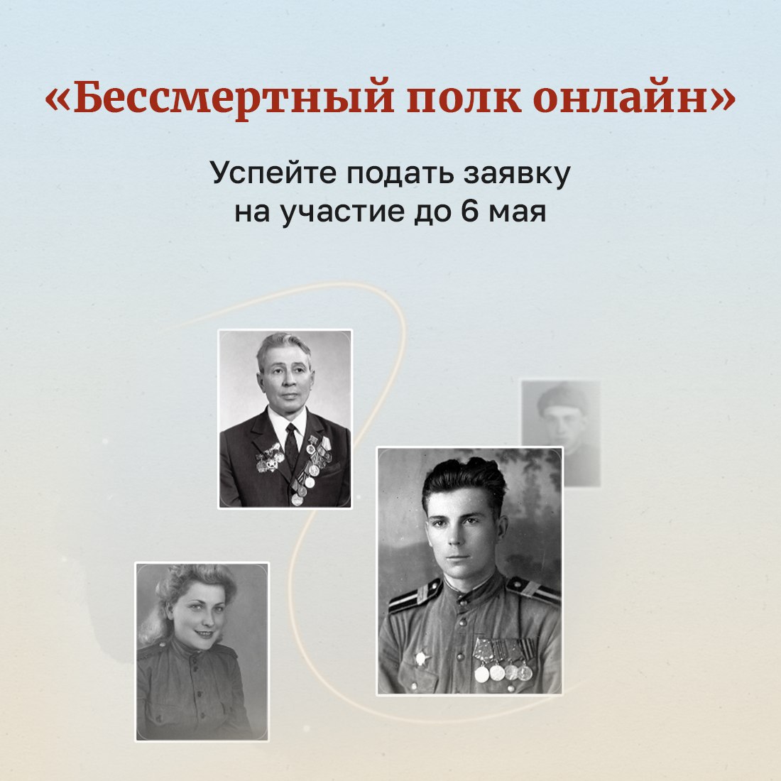 В каждой российской семье хранят светлую память о подвиге родных — фронтовиков, партизан и тружеников тыла. Берегут их фотоснимки. Чтобы ваш герой встал в строй «Бессмертного полка онлайн», достаточно подать заявку.