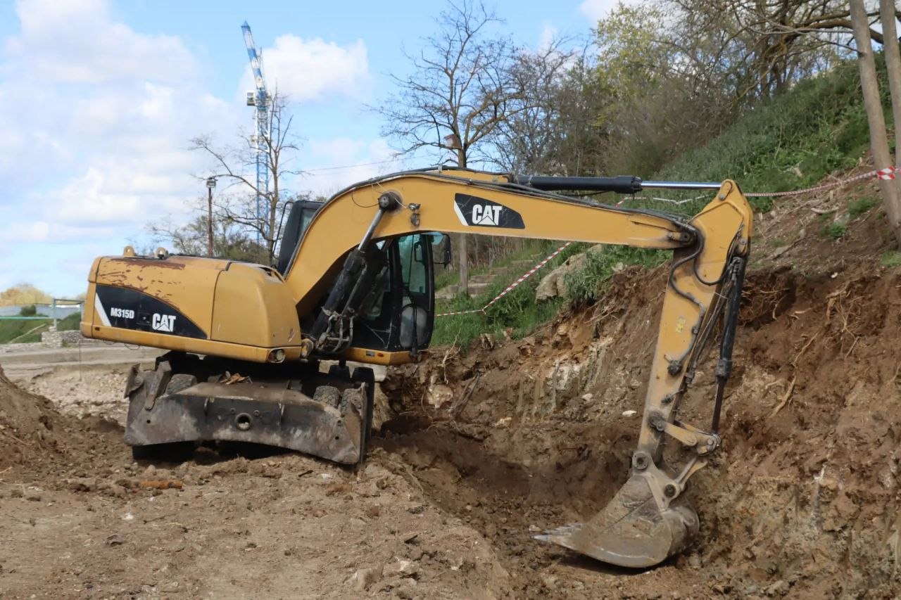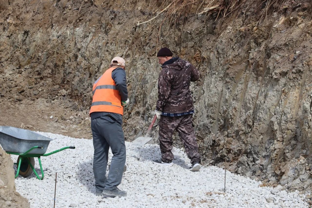 Основные усилия сейчас сосредоточены на нижнем ярусе, где продолжается монтаж подпорной стены. На участке работает тяжелая техника, одновременно ведется вязка арматурного каркаса. Сегодня выполняются бетонные работы.
