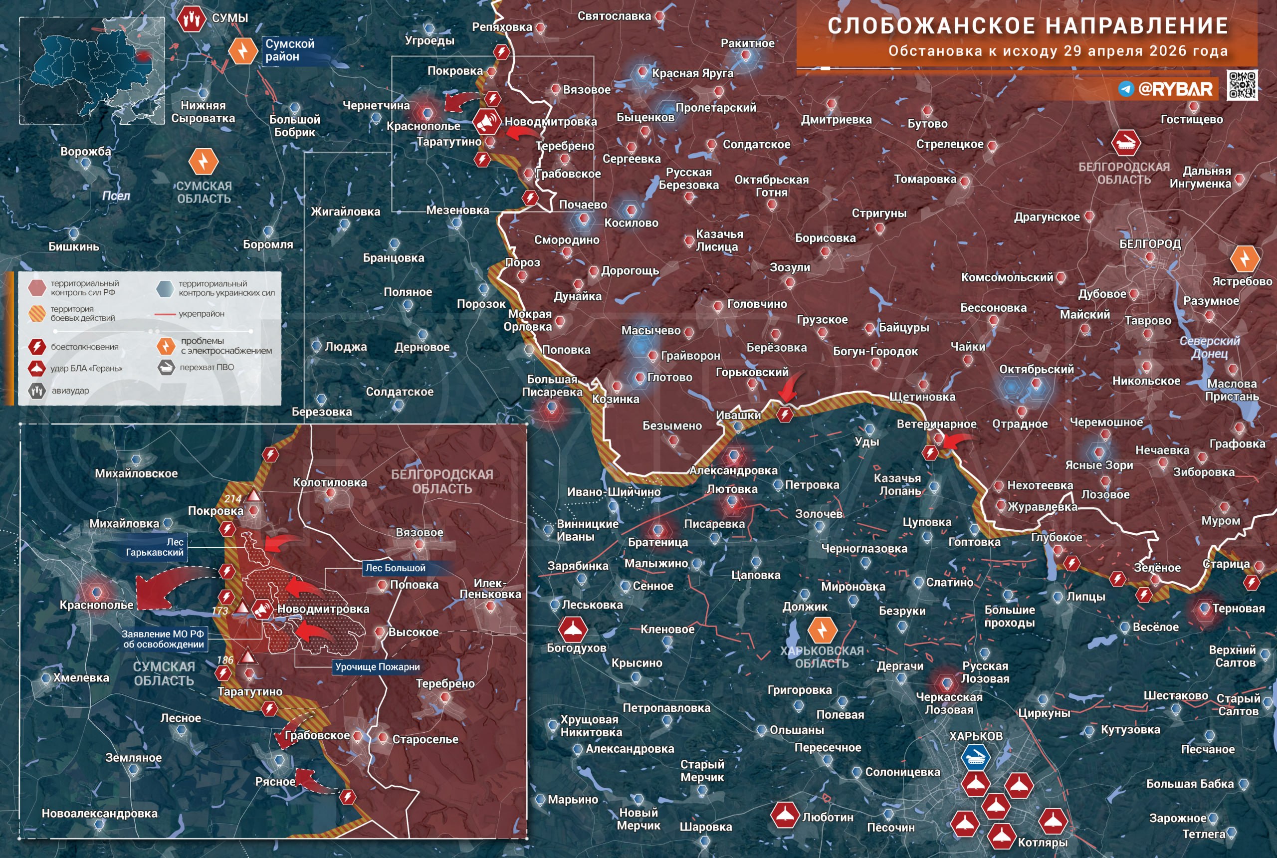 На Слобожанском направлениина северном фланге штурмовые подразделения ГВ «Север» завершили освобождение Новодмитровки, расположенной в нескольких километрах к востоку от Краснополья.