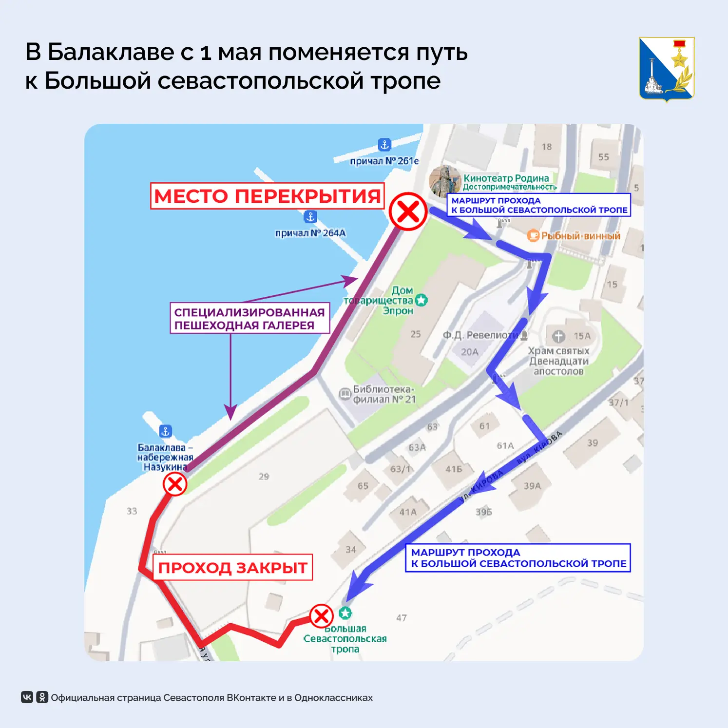 С 1 мая в Балаклаве изменится маршрут к Большой севастопольской тропе