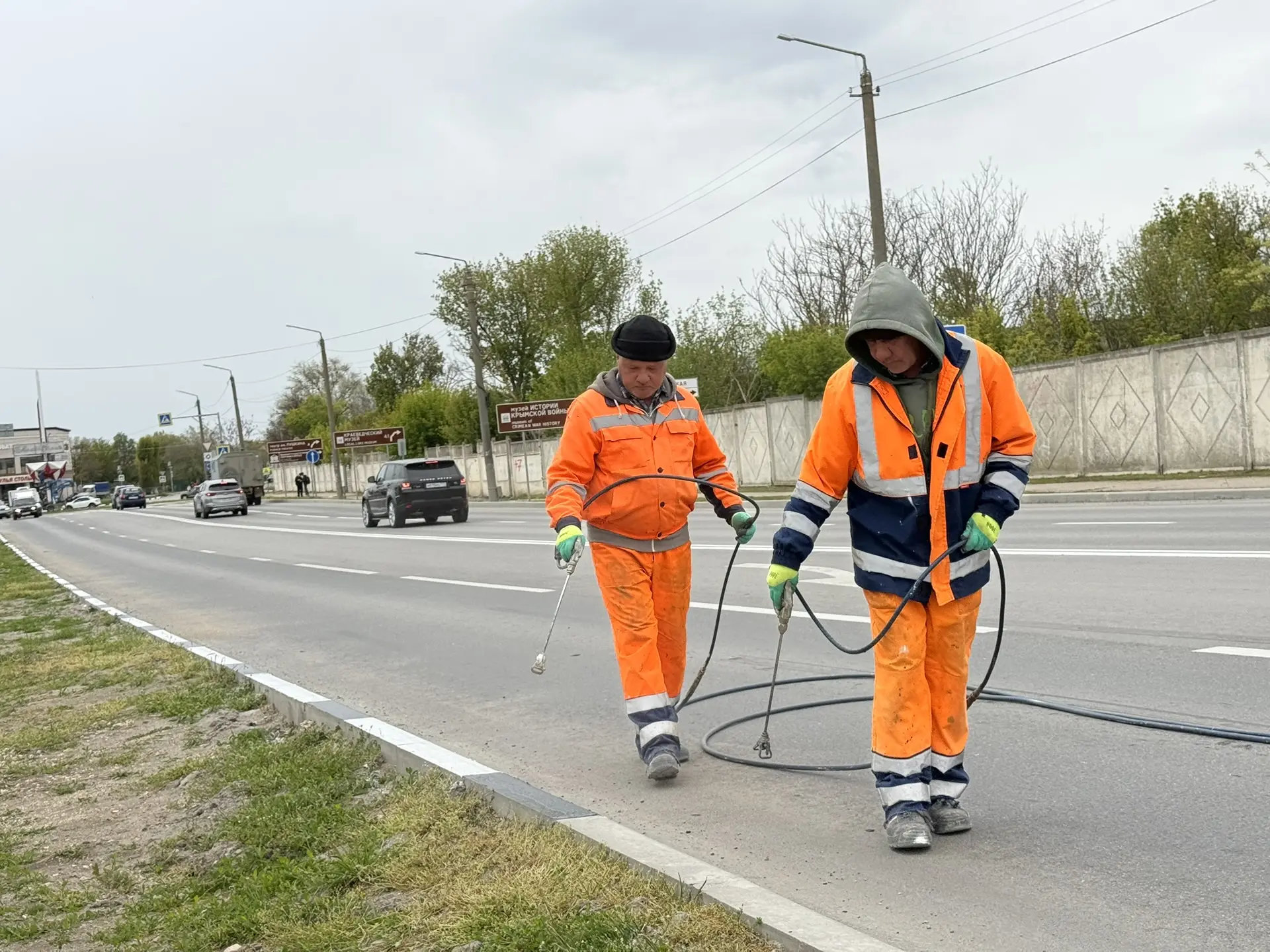 В ночное время суток, когда движение транспорта по улицам менее активное, наносим дорожную разметку.