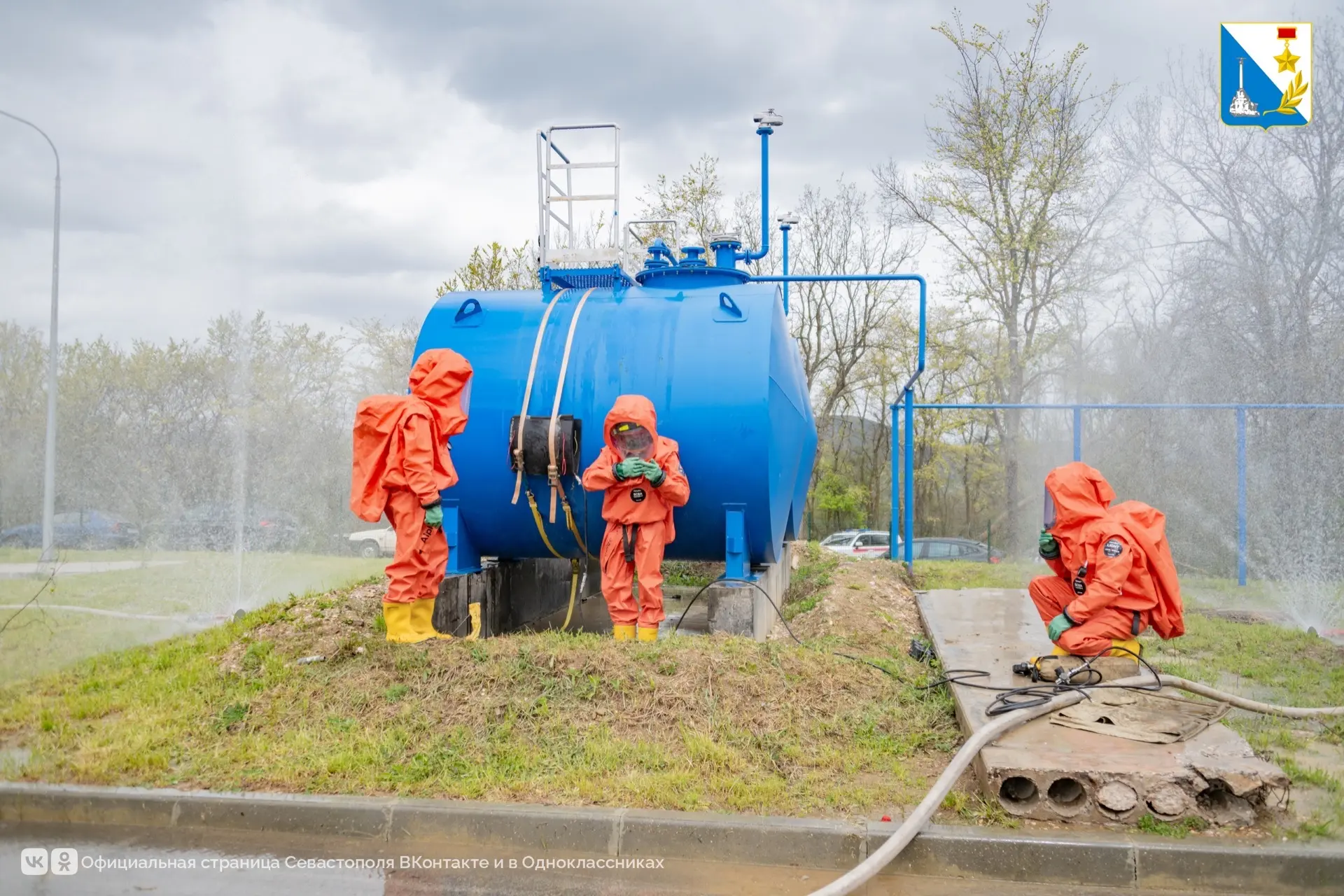 Севастопольские пожарные провели учения с условным землетрясением и разливом аммиака в 377-ю годовщину службы