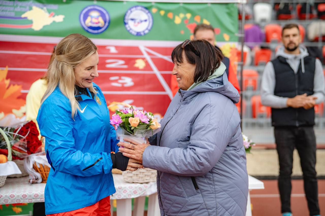 На открытии вручила благодарность Заслуженному мастеру спорта Российской федерации - Маркарян Вере Юрьевне за пропаганду здорового образа жизни, популяризацию спорта в Республике Крым и успешное выступление в Кубке России по метанию копья в г. Сочи в 2025 году.