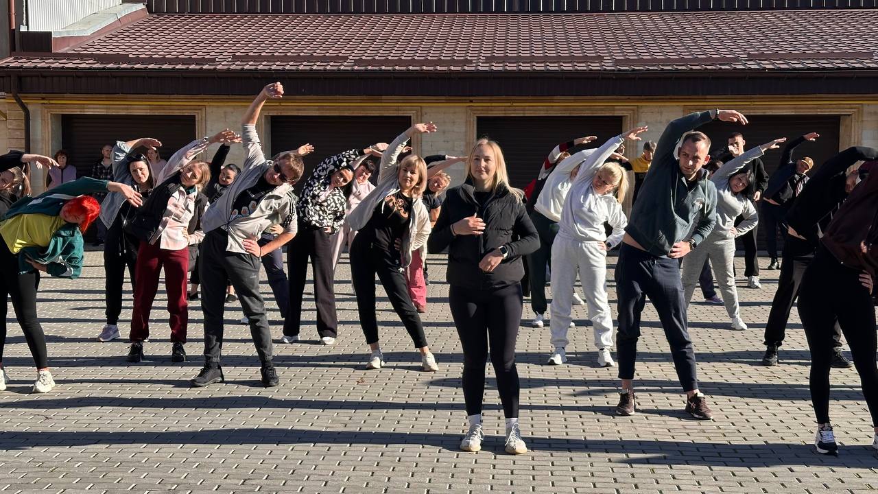 Искренне благодарю Андрея Васильевича Рюмшина за инициативу проведения утренней корпоративной зарядки, а также Арсену Жанышбековичу Арзиеву за поддержку и личное участие в утреннем спортивном мероприятии.
