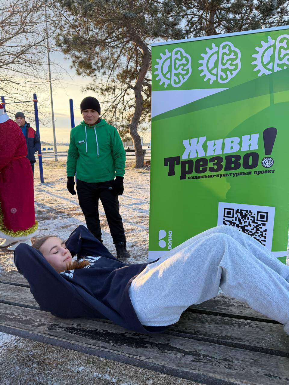 Первого января в городе Саки зарядку от лица министра спорта Республики Крым Ольги Александровны Торубаровой провёл заместитель министра спорта Республики Крым Шериф Тимурович Османов, который также является инициатором социально-культурного проекта «Живи трезво!».