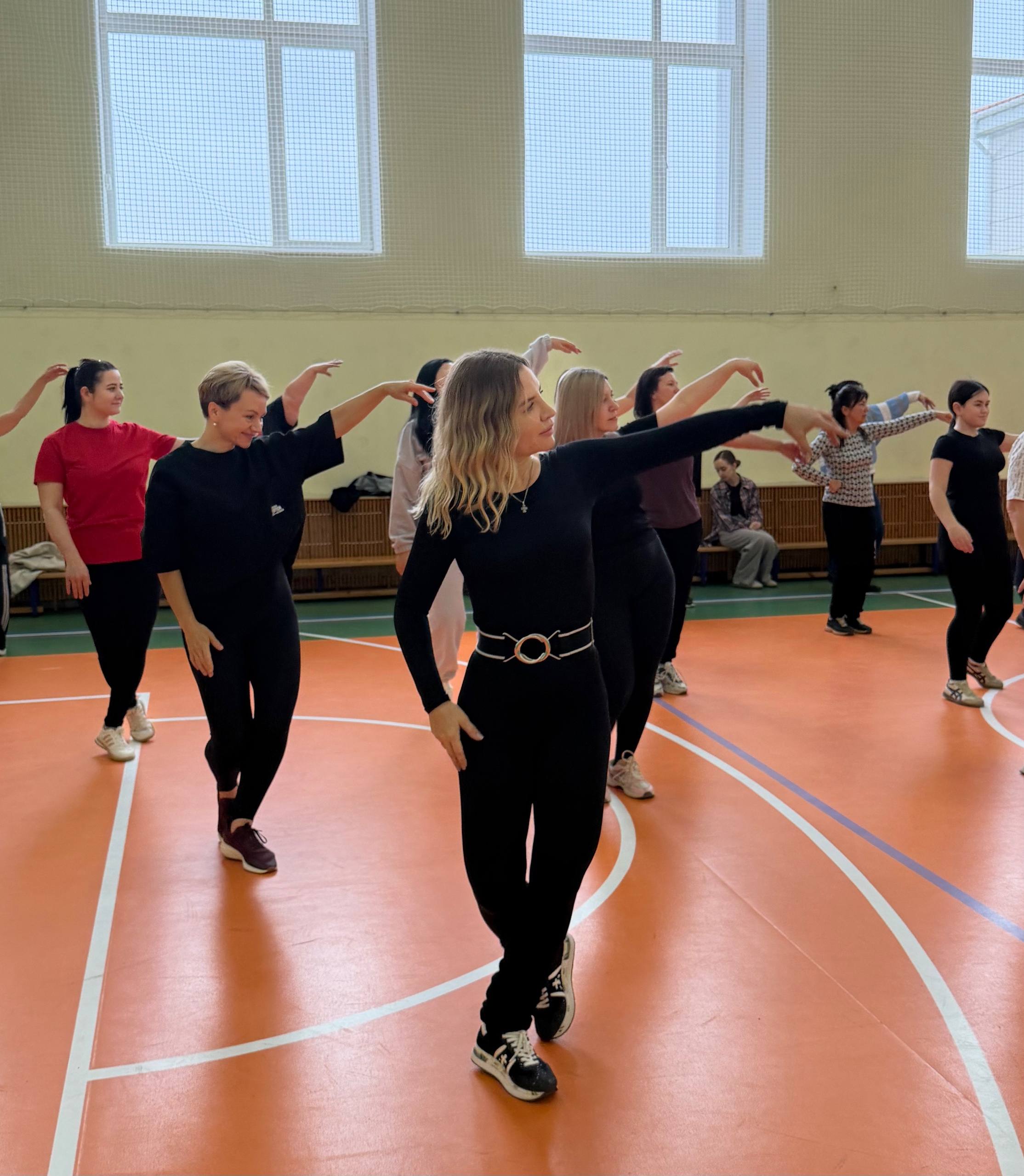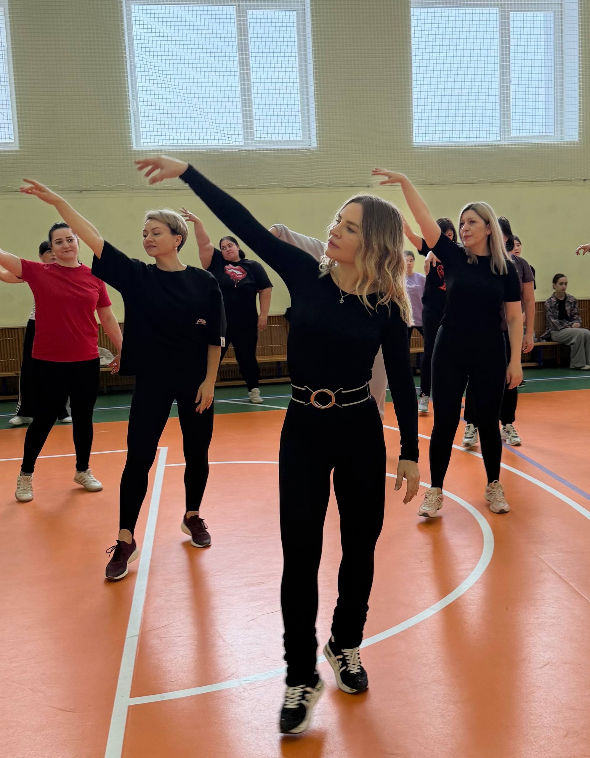 Совместно с президентом федерации фитнес-аэробики Фаина Абдираманова начали воскресенье в Зеленогорском сельском поселении Белогорского района. Просто замечательные, красивые, легкие женщины!