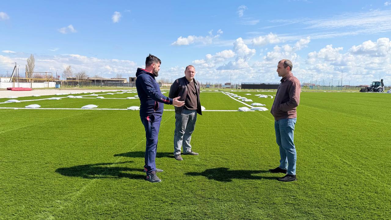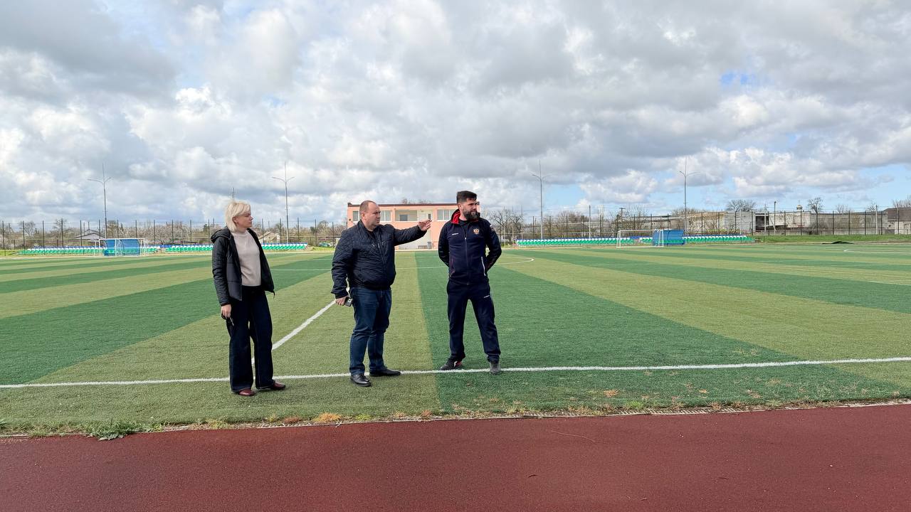 В пгт Черноморское вместе с главой поселения (Андреем Шатыренко посетили центральный стадион, на котором в этом году будет установлена площадка для сдачи норм ГТО.