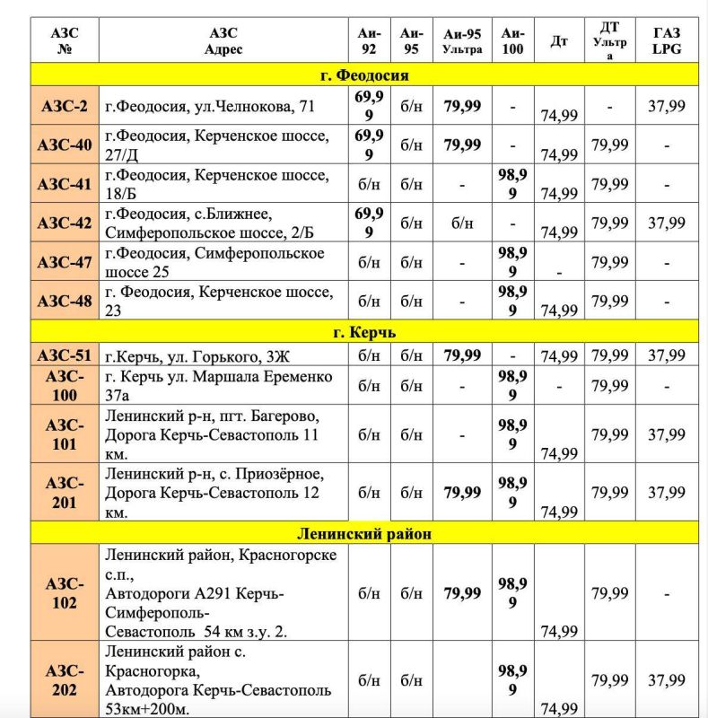 Все дополнительные подробности — на фото.Симферополь:— ул.Объездная , 11 (только АИ-92)— ул. Киевская, 231— ул. Генерала Васильева, 38-А (АИ-95 и АИ-92)Феодосия:— ул. Челнокова, 71— Керченское шоссе, 27/Д— с. Ближнее, Симферопольское...